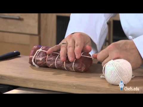 Watch and learn the proper way to tie a roast with a string. Certified Master Chef Edward Leonard, Le Cordon Bleu, demonstrates the roast tying technique and explains why it is important.
