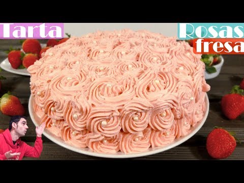 Fácil y deliciosa receta paso a paso, de Tarta rosas de fresa. Con betún de mantequilla y queso.