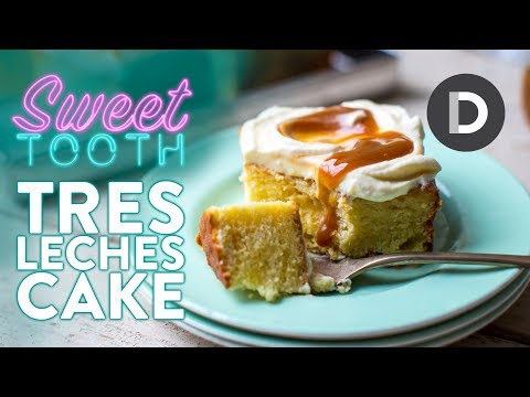 Tres leches or 3 milk cake is a Mexican dessert (Pastel De Tres Leche) and gets its name from the triple mix of condensed milk, evaporated milk and heavy cream that is poured over the just-baked cake. Get the recipe: /