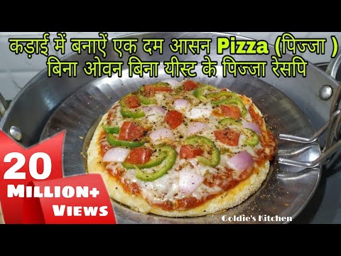 कड़ाई में बनाऐं एक दम आसन Pizza बिना ओवन बिना यीस्ट के पिज्जा रेसपि