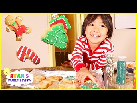 Ryan bakes kids size Christmas Cookies with Daddy and Mommy!! We tried to baking Christmas Cookies in different shapes like ginger bread, stockings, Christmas trees and more!