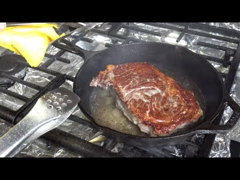 Como cocinar un Ribeye steak en sartén de hierro fundido.