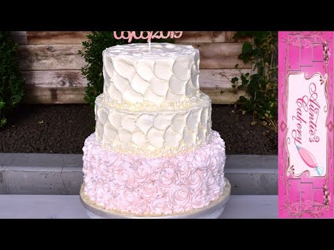 This is a lovely blush pink rosette rustic buttercream cake! Perfect for a summer wedding.