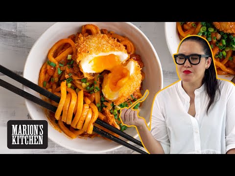 Crispy Egg, Bacon & Kimchi Noodles - Marion's Kitchen