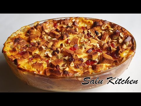 This Bread pudding from Salu Kitchen is a Hyderabadi variant, taught by our friends. This is a simple pudding consisting of milk, custard, nuts and milk. The pudding is first arranged and then baked to perfection. This Indian dessert consists of the richness of milk and nuts.