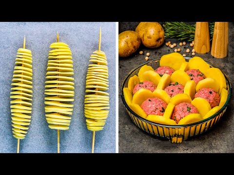 How to cook delicious food and not waste a lot of time? You will know it in this video! Tasty recipes of fried and baked potatoes and pie with ham, cheese and potato are waiting you!