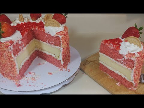 Hey everyone in today's video I show you how I make the strawberry cheesecake crunch cake