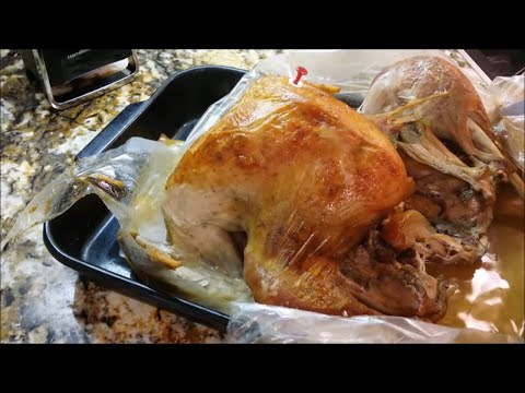 The bag's package directions will tell you how long to cook your turkey depending on how much it weighs. This turkey is so moist some folks will swear it's a hen. The apples make the turkey slightly sweet and juicy. The lemons lend just a hint of citrus flavor. I like using the oven bags because they also help with keeping the moistness in. The bag also prevents messes and makes clean-up as easy as just throwing out the bag. No matter if you live as far south as Texas or Georgia or as far North as New York or you might be in California on the West Coast or anywhere in-between or around the world ….. you’re gonna love this! Thanks guys.