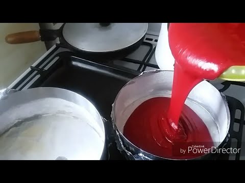 Ингридиенты: мука-380 гр, какао-15 гр, раст.масло-200 гр, сахар-450 гр, яйца крупные-3шт,ваниль, кефир-400 мл, краска пищевая гелевая алая-2 ст л, уксус 5%-1,5 ст.л, сода пищевая-1,5 ст.л