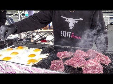 Yummy Beef on Grill, Eggs and More. Great London Street Food
