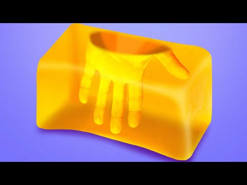 We start with DIY soap. However, it's a very unusual craft. You can use a rubber glove and fill it with liquid soap base. This is how you can get a hand-shaped soap that will give you a handshake every time you use it. You can repeat the same with paraffin and make a candle!