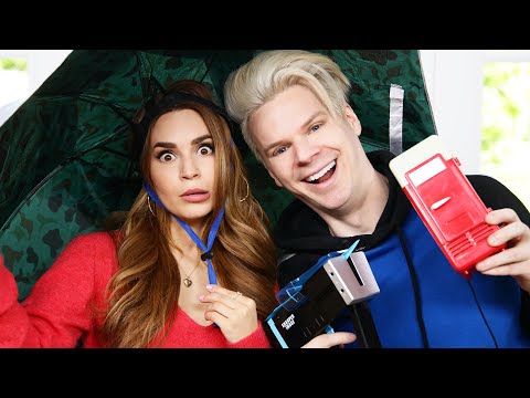 We had so much fun #Trying all of these #Weird Amazon #Gadgets! There was a paper airplane launcher, a beard shaving bib, a hat that looks like a giant umbrella, a single can mini fridge and more!