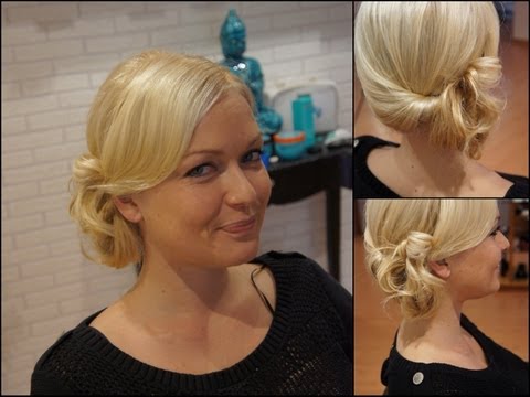 Side swept rolled updo hairstyle for medium hair tutorial Charlize Theron vintage/retro twist