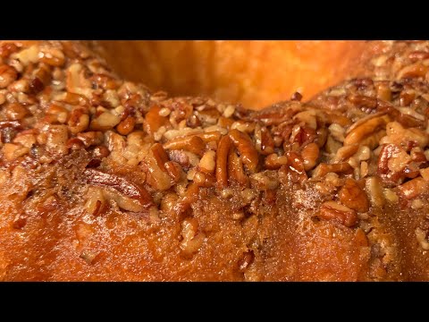 Rum Cake With Toasted Pecans Soaked In Rum Sauce